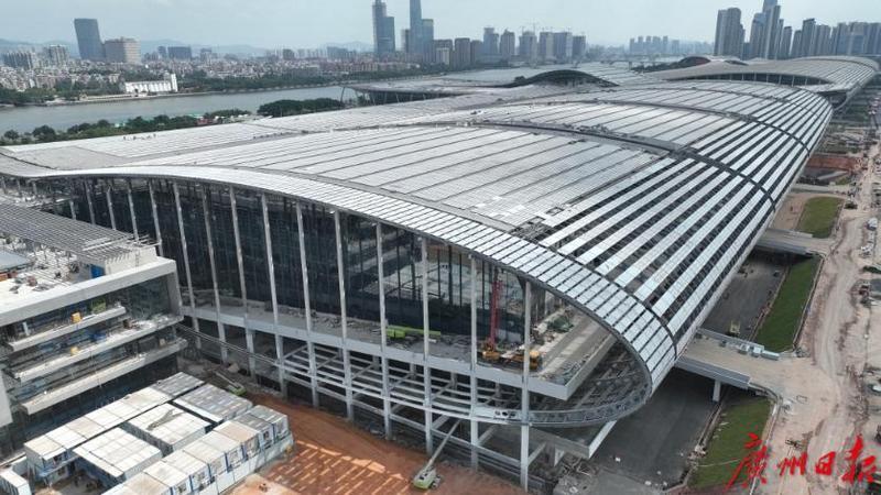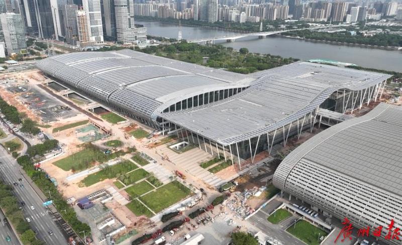 10月9日,記者從中建八局廣交會(huì)展館四期項(xiàng)目部獲悉,廣交會(huì)展館四期項(xiàng)目展廳區(qū)域?qū)⒂诮诮桓叮壳埃擁?xiàng)目處于整體收尾階段。