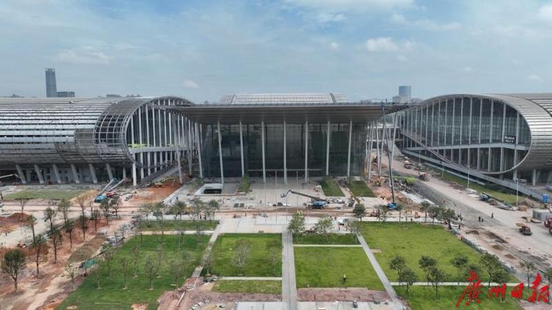 記者看到,展廳金屬屋面、幕墻工程已全部完成,展廳外部正式道路已基本完成,園林綠化已具備初步形象,正進(jìn)行收尾工作。