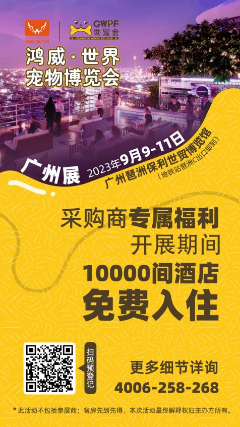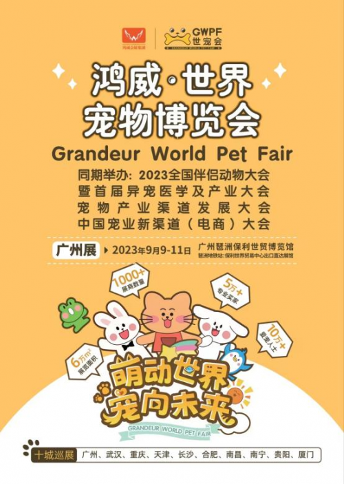 2023年9月9日-11日,廣州保利世貿(mào)博覽館,10萬+愛寵人士和5萬+采購商都會(huì)來的鴻威?世界寵物博覽會(huì)(GWPF世寵會(huì)),熱忱期待您的加入,和我們一起見證國內(nèi)寵業(yè)品牌的誕生與成長,多城聯(lián)動(dòng),商貿(mào)交流,對話全球,加速國際化戰(zhàn)略進(jìn)程,共筑引領(lǐng)世界風(fēng)向的寵業(yè)新標(biāo)桿!