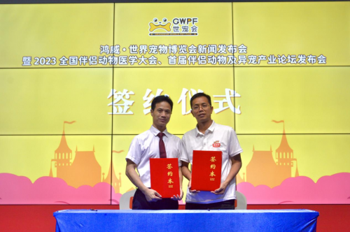 圖左:世寵會主理人王登云,圖右:廣東省畜牧獸醫學會寵物分會秘書長陳修強